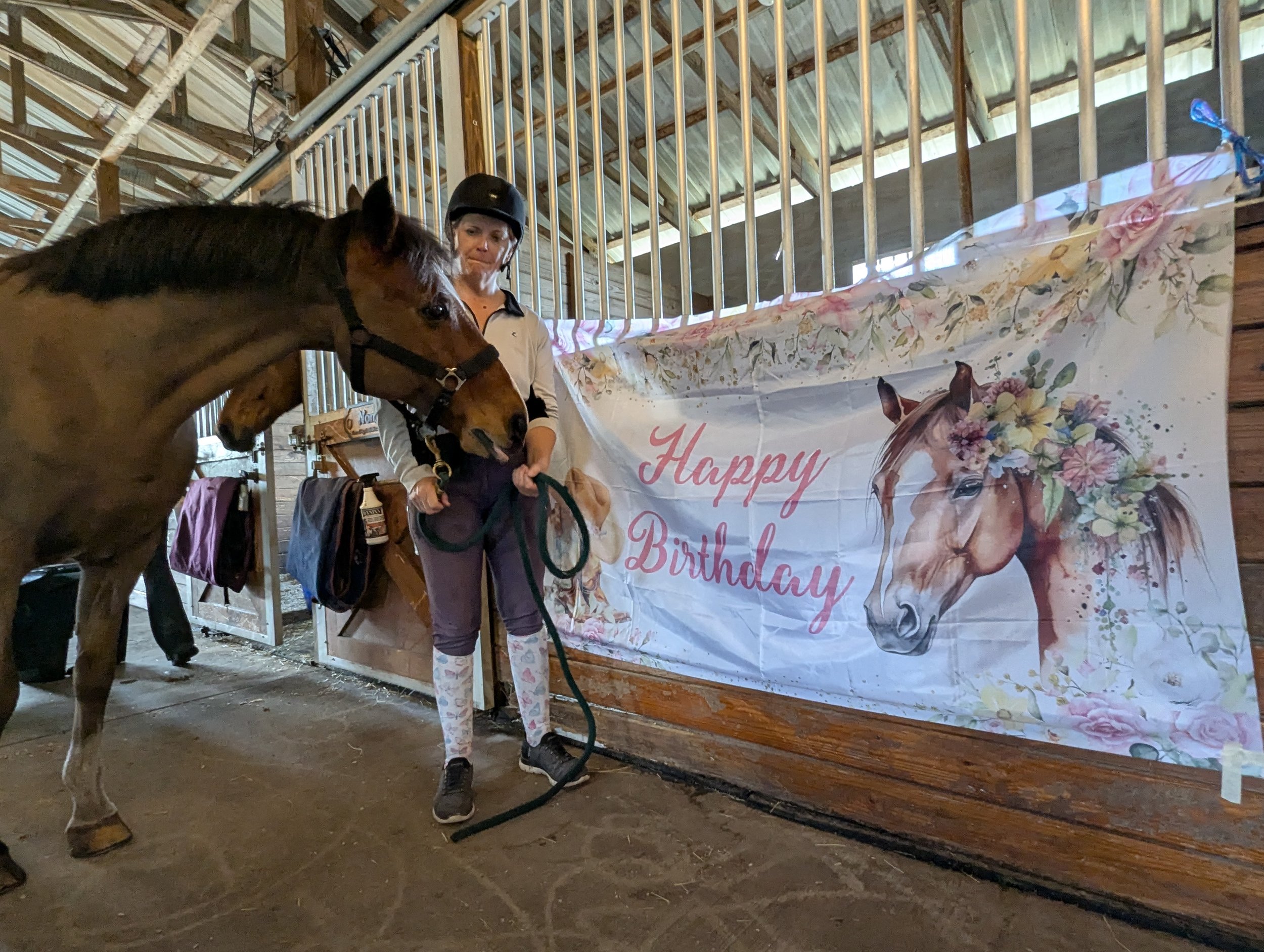 On the last day of March (31), we celebrated Noni’s 26th birthday. He was so astonished to get so many treats, horse cookies baked by Helen, bananas, apples, carrots, and many, many kisses and hugs.