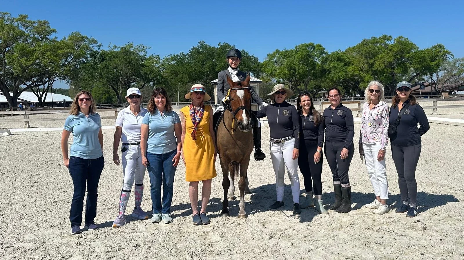 On Saturday, March 28, I drove with my student Maggy and my beloved 25-year-old lesson horse Noni the Pony to the Suncoast Dressage Festival, a USDF recognized show, in Tampa. Maggy rode with Noni Training Level Test 3, her first recognized show. It also was her Century Club Ride (horse and rider must be 100+ years old to qualify). Many students came to support Maggy and Noni; they are the first Century Club team I trained.